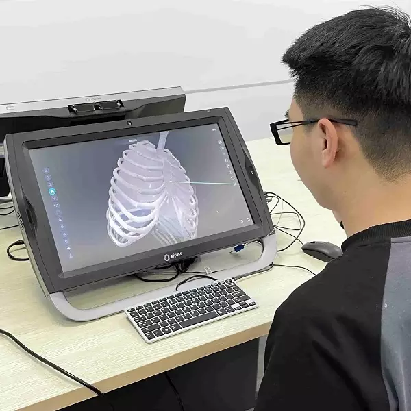 In addition to the VR system, DIGIHUMAN offers an innovative AR system. Operators wear 3D tracking glasses to observe anatomical structures in three dimensions, while an interactive pen facilitates hands-on learning. This system allows for real-time interaction, enabling users to manipulate virtual elements while observing them on an external large screen. The combination of real scenes with virtual simulations ensures that the human body educational VR 3D experience is both immersive and informative, making it ideal for teaching and training purposes.